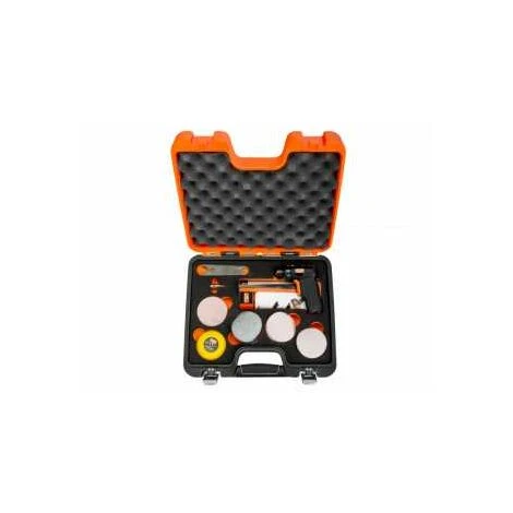 Satz Schleifer mit PistolengriffBeinhaltet:1 x BP20425 x Schleifscheibe mit Körnung 18025 x Schleifscheibe mit Körnung 22010 x Schleifscheibe mit Körnung 32010 x Schleifscheibe mit Körnung 800 | Eigenschaften: Luftverbrauch in l/min: 170