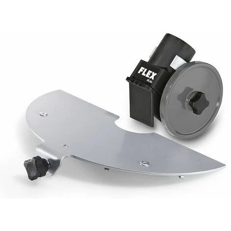 Absaughauben-Set für Arbeiten mit Trennscheiben für Winkelschleifer 230 mm. Bestehend aus Absaugung mit Führungsrad und Aluminiumdeckel. Werkzeuglos auf bestehende Schutzhaube montierbar.