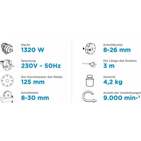 - Trennscheibendurchmesser: 125 mm