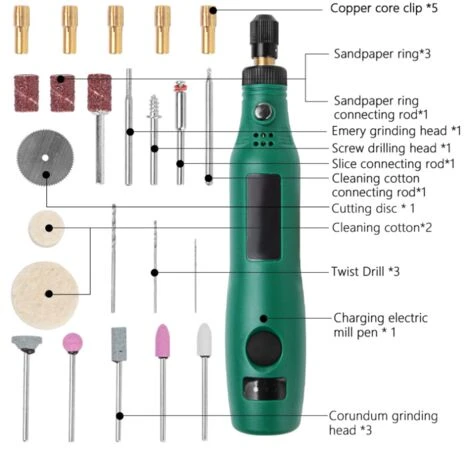 - Je nach Bohrer, 24 Aufsätze helfen bei verschiedenen Aufgaben wie Bohren, Schleifen, Gravieren usw., die Spannfuttergröße beträgt 3/32 (2,3 mm)