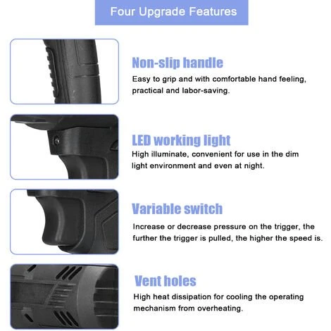 Ausgestattet mit LED-Arbeitslicht, hoher Beleuchtungsstärke, bequem für den Einsatz in Umgebungen mit schwachem Licht und sogar nachts.