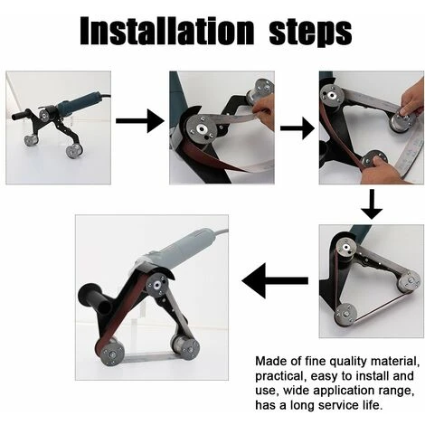 Dies ist ein professioneller Schleifbandadapter. Sie können Ihren Winkelschleifer per DIY in einen Bandschleifer umbauen. Es ist einfach zu installieren und zu bedienen. Es ist ein perfektes Werkzeug für Bandschleifer.