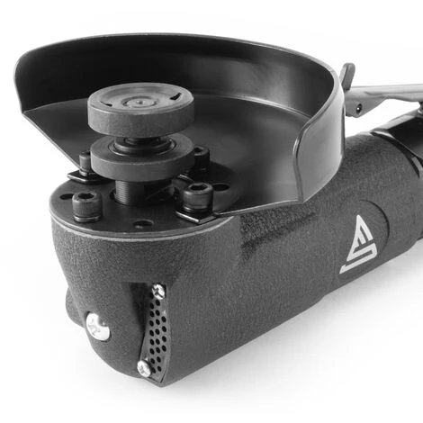 Der robuste und leistungsstarke Druckluft-Winkelschleifer arbeitet mit 11.000 U/min und eignet sich sehr gut für den professionellen Einsatz in der Kfz-Werkstatt, im Maschinenbau oder in der Industrie. Auf der Werkzeugaufnahme können Schleif- und Schruppscheiben mit einem Druckmesser von 100 mm befestigt werden. Das Gehäuse des Druckluft-Trennschleifers ist aus schlagfestem Stahl-Guss gefertigt. Mit dem am Griff montierten Kontrollhebel lassen sich Drehzahl und Luftmenge gezielt regulieren. So wird sicheres und präzises Arbeiten ermöglicht. Die hochwertige Verarbeitung des Winkelschleifers sorgt für hohe Standzeiten und garantiert eine lange Werkzeugverfügbarkeit.