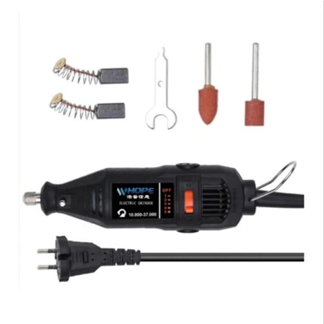 Zubehör, Kohlebürste, Feuerstein-Schleifkopf, Schraubenschlüssel, Handbuch