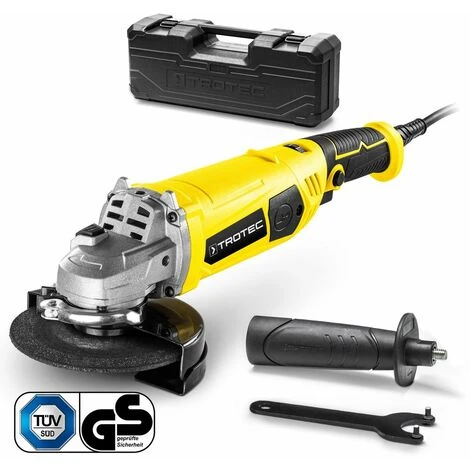 Mit den verschiedenen Scheiben (125 mm Durchmesser) ist das Gerät universell einsetzbar – insbesondere, um harte Materialien wie Steine, Fliesen, Beton und Metall zu durchtrennen und zu schleifen. Lack-und Roststellen lassen sich mit einer Drahtbürstenscheibe sauber abschleifen, Metall- und Steinflächen aufpolieren sowie Schweißnähte säubern und glätten. Vorteilhaft: Die stufenlose Drehzahlvorwahl per Stellrad ermöglicht es Ihnen, die Leistung des Gerätes optimal auf das jeweilige Material hin zu regulieren. Nach getaner Arbeit können Sie den Winkelschleifer inklusive der montierten Scheibe im handlichen Transportkoffer fix und sicher verstauen. Im Lieferumfang sind außer dem Koffer noch eine Trennscheibe für Metall (Ø 125 mm), eine Schutzhaube, ein Zusatzhandgriff, ein Zweilochspannschlüssel sowie eine Spannmutter enthalten.