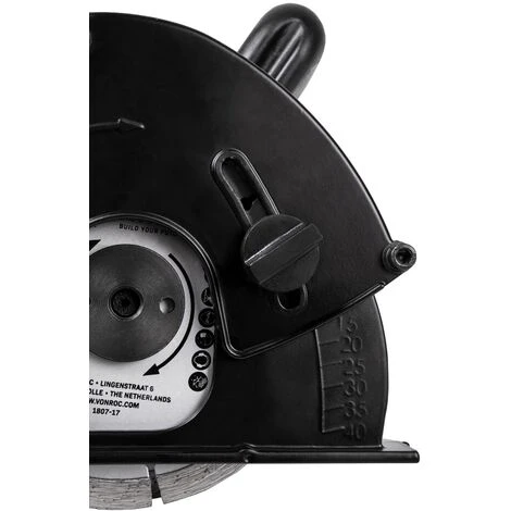 Für vertikale Schlitze fräsen Sie von oben nach unten. Auf diese Weise hilft Ihnen das Gewicht der Maschine, saubere Rillen zu ziehen. Eine praktische Hilfe ist der weiße Pfeil auf der Wandfräse, damit Sie sofort wissen, in welche Richtung die Wandfräse arbeitet. Dieses komplette Set enthält 4 segmentierte Diamantscheiben. Setzen Sie zwei Scheiben nebeneinander im Gerät ein, um parallele Schlitze zu fräsen. Sie können die Scheiben zum Fräsen von Beton, Gestein, Ornamentpflastersteinen, keramischen und Dachziegeln verwenden. Die Scheiben haben einen Durchmesser von 150 mm.
